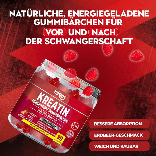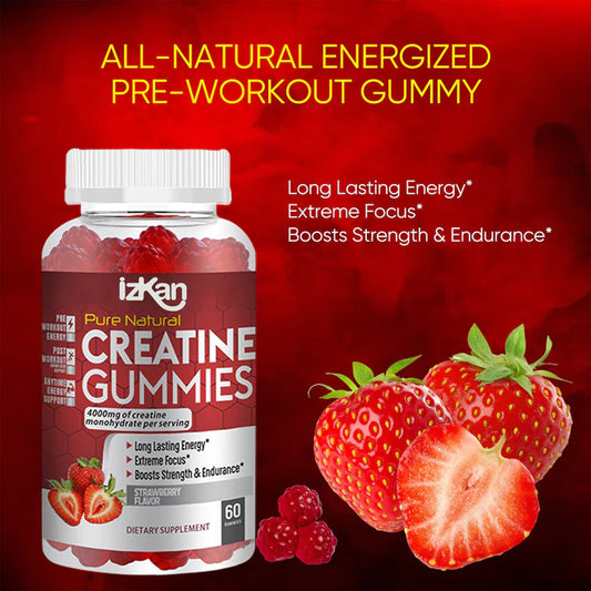 iZKAN Creatine Monohydrate Gummies 4000mg, 60 Sugar-Free, Halal, Vegan Strawberry Flavor