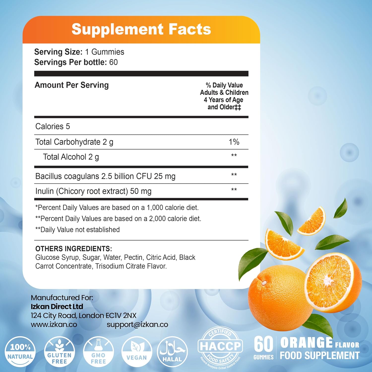 Probiotic Gummies with Prebiotics – 60 Orange Flavour Gummies – Bacillus Coagulans 2.5 Billion CFU & Inulin – Daily Gut Health & Immune Support for Kids Vegan, Non-GMO, Gluten Free (Orange)